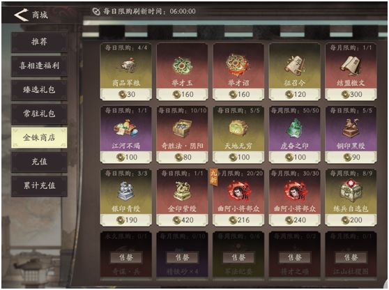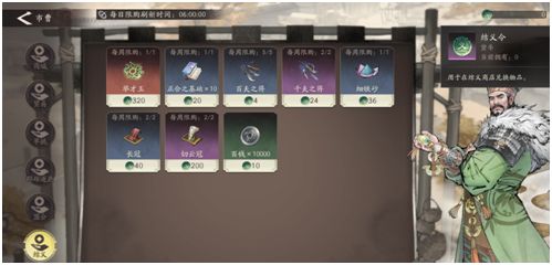 在主城中有个建筑叫市曹,也可以通过右上方按钮进入,在里面可以使用各种货币来兑换道具