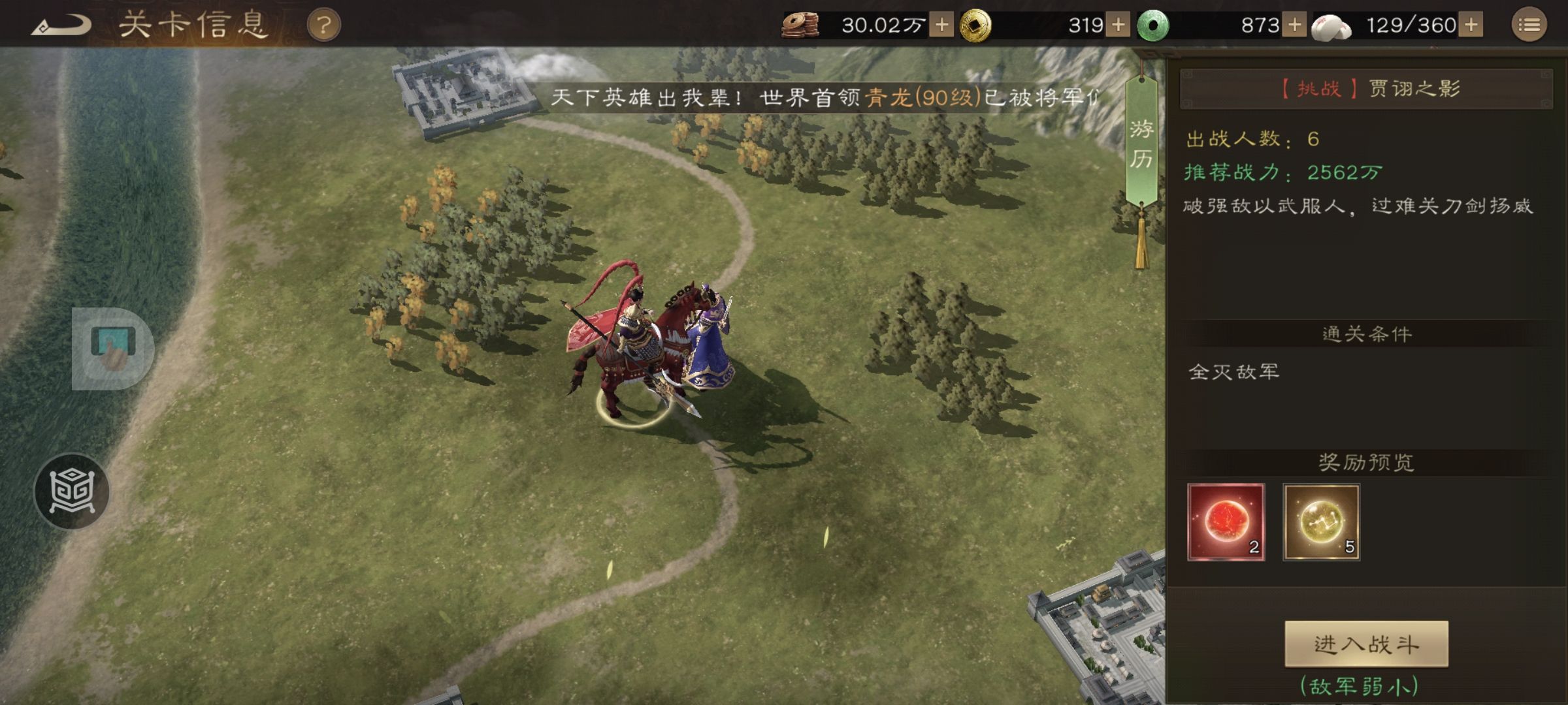 《新三国志曹操传》游历事件贾诩之影攻略!本关难度较低,可凭借强力输出阵容快速通关。推荐使用吕布、诸葛、周瑜等角色,利用其高额技能伤害进行爆发,通常两回合内即可结束战斗。