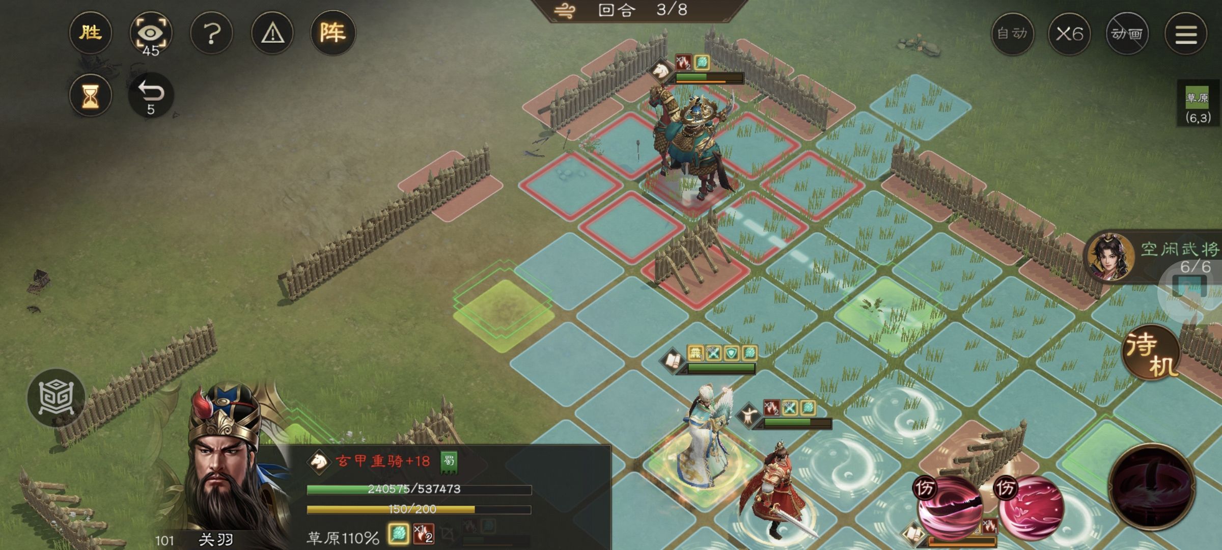《新三国志曹操传》游历事件诸葛亮之影需应对每回合出现的红色警示地块,必须由我方单位站上才能规避伤害。建议使用关羽、孙尚香等高机动骑兵执行占位任务,其余主力则负责全力输出。