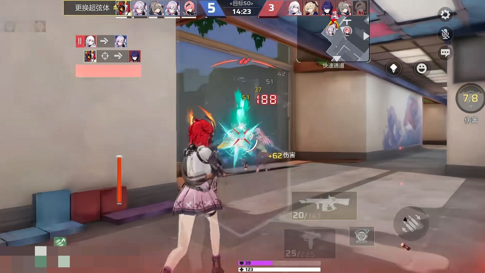 在组队配置方面,优先选择能协助艾卡快速积攒热量且不干扰输出节奏的支援角色。推荐搭配星绘,开局由她释放护盾占据前线位置,艾卡可在盾后安全地使用普攻叠加热量,通常四到五次射击即可完成充能,随后释放强化火球进行压制。当敌方突进时,星绘可用大招反制,艾卡紧接着释放火圈封锁退路,形成流畅的反击链。若无星绘,奥黛丽也可作为替代,其机枪火力压制可为艾卡争取宝贵的启动时间,但缺乏护盾保护,需更加注重走位灵活性。追求更高稳定性时,可加入拉薇,利用她的探测技能揭示敌人位置,让艾卡提前在墙体后方布控火圈蹭取热量,待技能强化后再发起团战,提升先手优势。