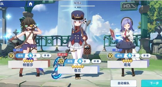 要是没有收到这些高星的角色,也可以选用苍兰 鸢尾 任意水属性治疗,这一个组合实用性就比较出色,当然核心的玩法是不变的,而且还多了一个续航保障。这套阵容中,因为有鸢尾还有苍兰的保障,将特丽莎更换成水属性治疗,就能提升续航的能力。苍兰本身的生存能力并不是很强,治疗角色就可以帮助整个队伍抵抗得住长时间的消耗,减少减员的情况,在操作时从容应对。而且水属性治疗还能有效强化水属性协同的效果,虽然比不上特丽莎的直接增益,但也很容易成型。