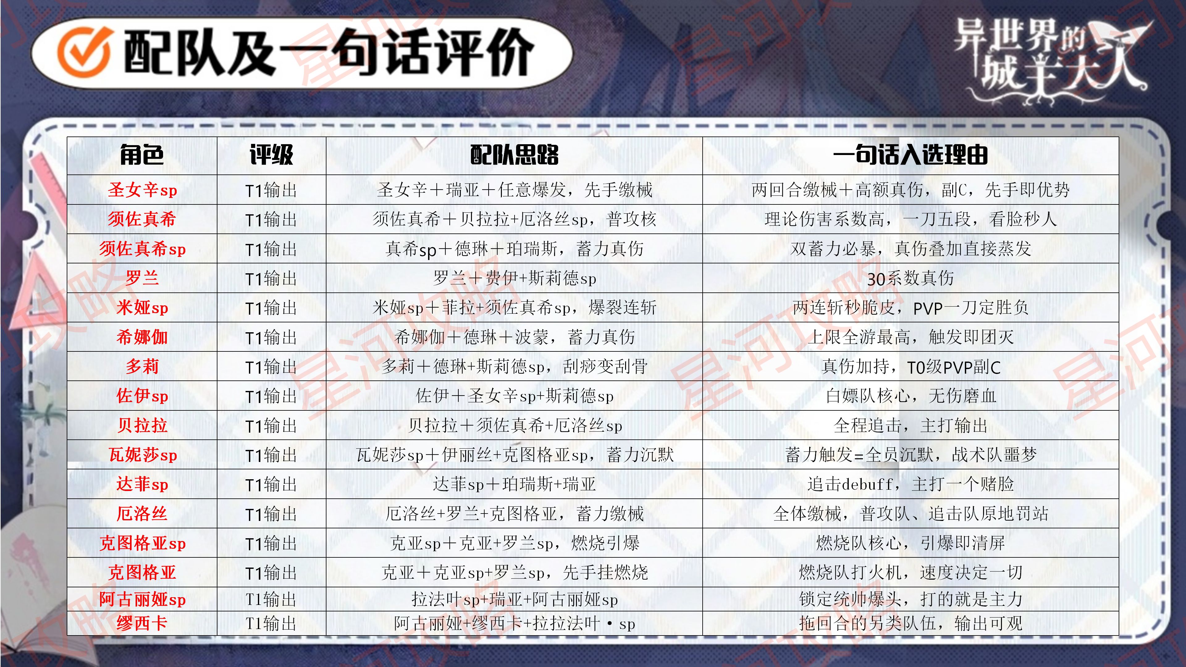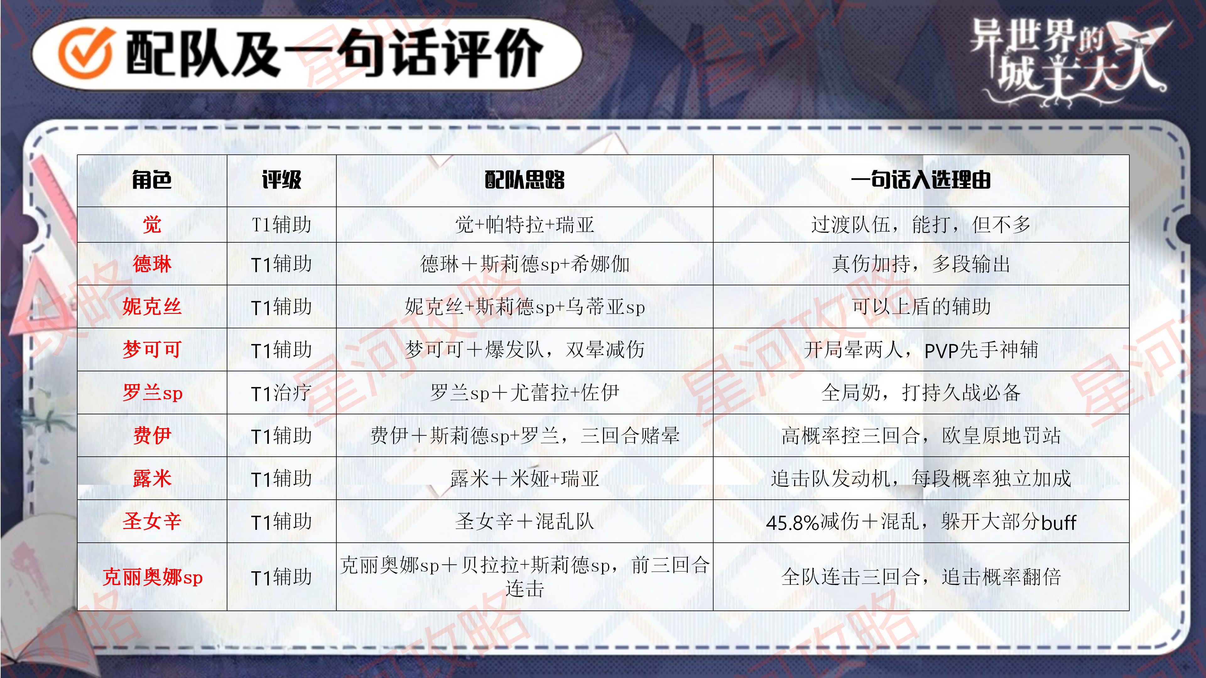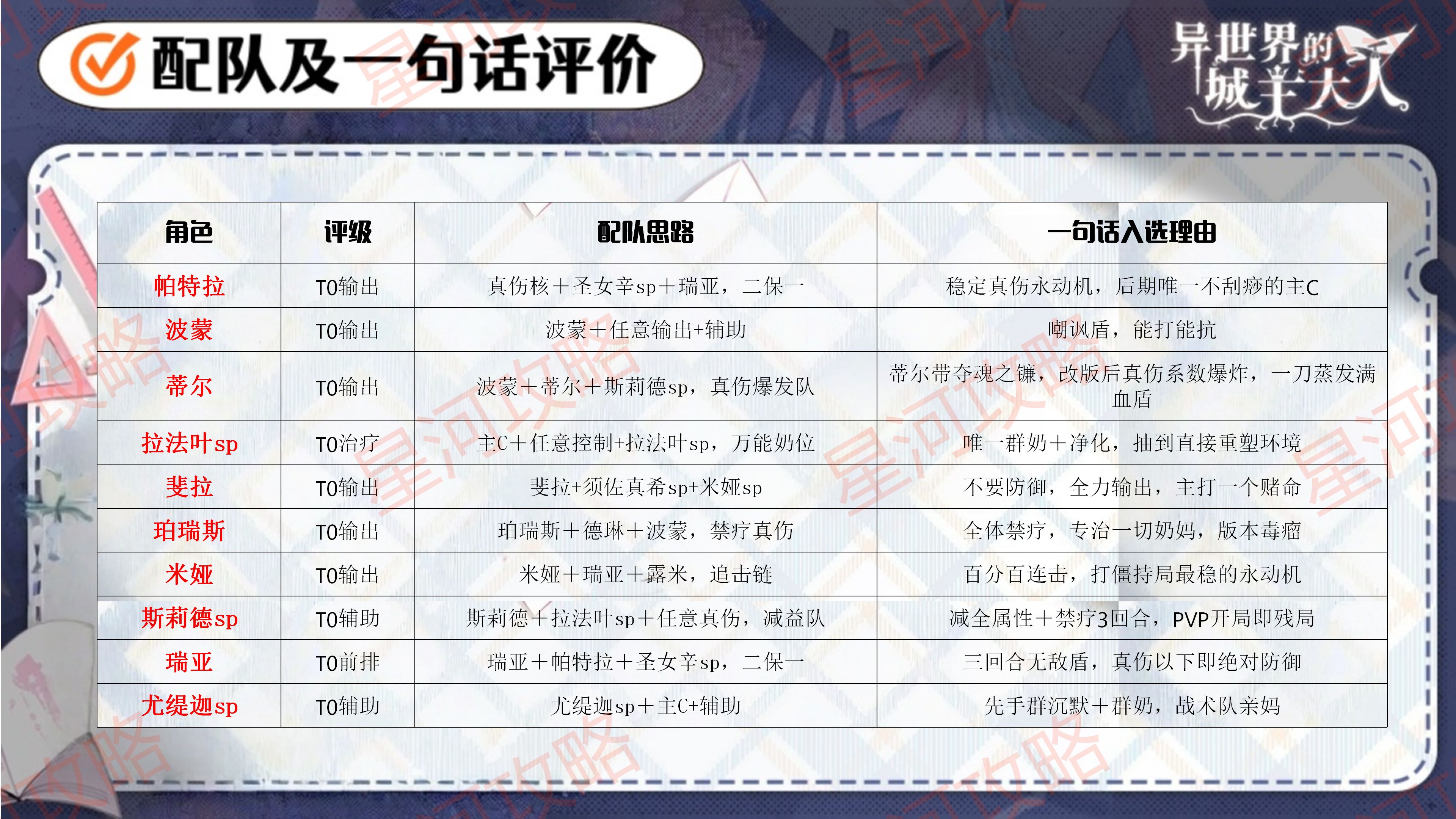 《异世界的城主大人》个人角色强度榜及配队推荐