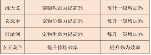 灵宝:一些灵宝激活及升级也增加修炼效果