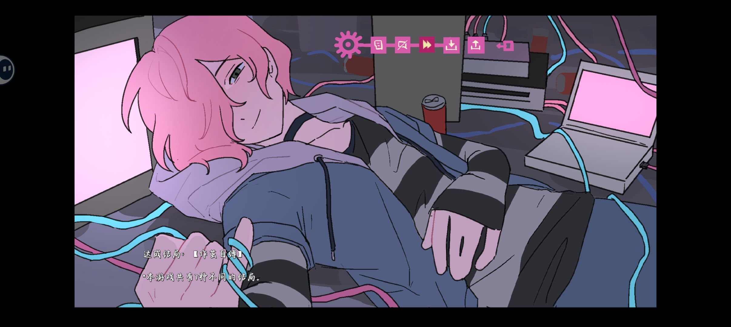 游戏一共有七个结局分别是:【末路狂飙】、【阿塔那的世界】、【作茧自缚】、【无能为力】、【笼中囚鸟】、【救赎之路】、【自由意志】