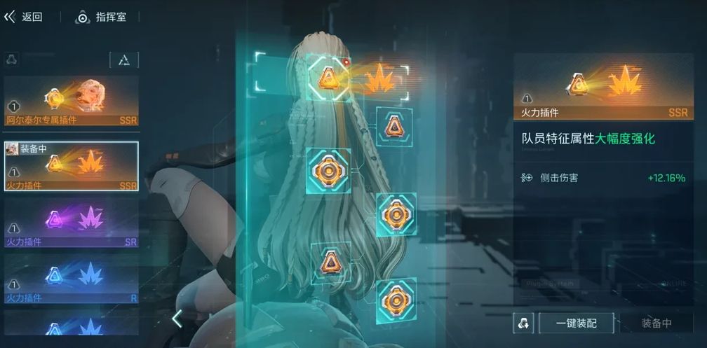 通用插件分为三个等级,首先是SSR通用插件,它适用于所有火力队员,它的效果是能增加高额的侧击伤害值,搭配沙鹰模组可以说是非常炸裂的存在。其次是SR通用插件,也是火力通用插件,虽然加成的数值效果不如ssr,但是强度也还是不错的,中等偏上的程度。最后是R通用插件,它的强化幅度比较小,但是类型很多,大家可以根据属性来使用。
