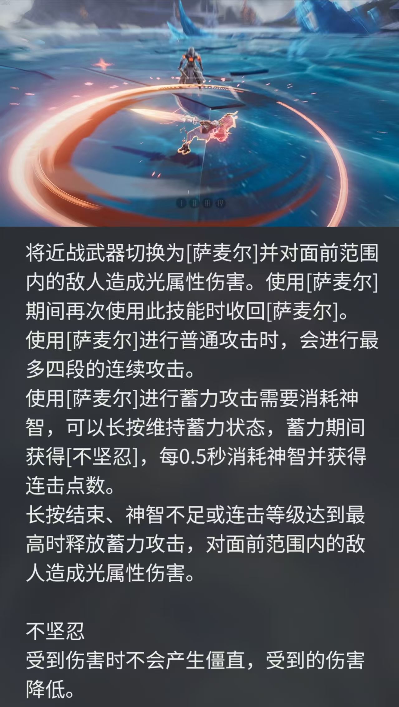 长按可以蓄力,快速提升连击等级,提前松手或者连击到s级后,向前劈出一剑,造成更高的伤害倍率,对群打击感是非常好,她开大不耗神智,单刷boss也很有优势。