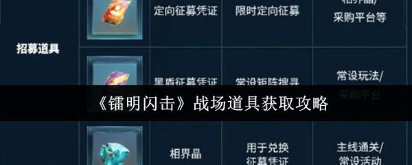 以上就是小编整理带来的镭明闪击战场道具获取攻略,更多相关游戏攻略,请关注手游网!