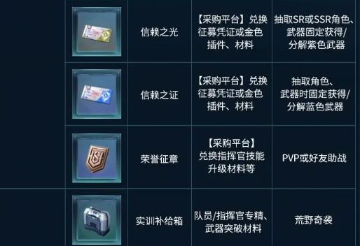 武器与模组养成道具也可以盯着武器兑换币,还有模组数据单元,主要就是靠深红武装副本。深红武装每一周打三次,不仅可以获得两个道具,并且还可以出活性合金锻料。这可就是医疗还有工程专精再提升的关键材料,必须要优先去刷满。还有专精以及突破材料,不同职业的队员所需要对应的材料也是有所区别的,千万不要搞混了。实训补给箱,还有实训仪都可以通过打副本拿到,队员以及指挥官战术专精的突破全部都会靠他。