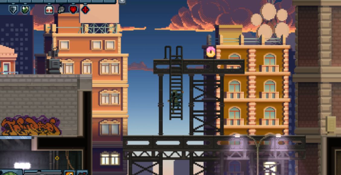 游戏第一个章节就有甜甜圈,位置在1-3的大使馆关卡,玩家进入关卡后,到第一座和第二座的中间找到高架平台,向左跳,就能捡到第一个甜甜圈,这个位置很容易会错过,只要掌握了跳跃技巧,就能轻松捡到。在1-5关卡中甜甜圈的位置比较隐蔽,进入关卡后前往地图的右下角找到高架,击败敌人后顺利到达顶部就可以轻松拿到甜甜圈了。进入1-8关卡之后,玩家需要去一楼最右侧,走到地面顶部才能找到甜甜圈,这个位置虽然比较简单,但是同样需要小心敌人的阻击。1-12关卡,甜甜圈在右侧建筑物的屋顶上,屋顶上有一名狙击手,玩家需要绕过他,完成突袭,才能爬到屋顶的台阶上,捡起甜甜圈,这一关比较难,玩家需要打败敌人,而且要有较好的跳跃。