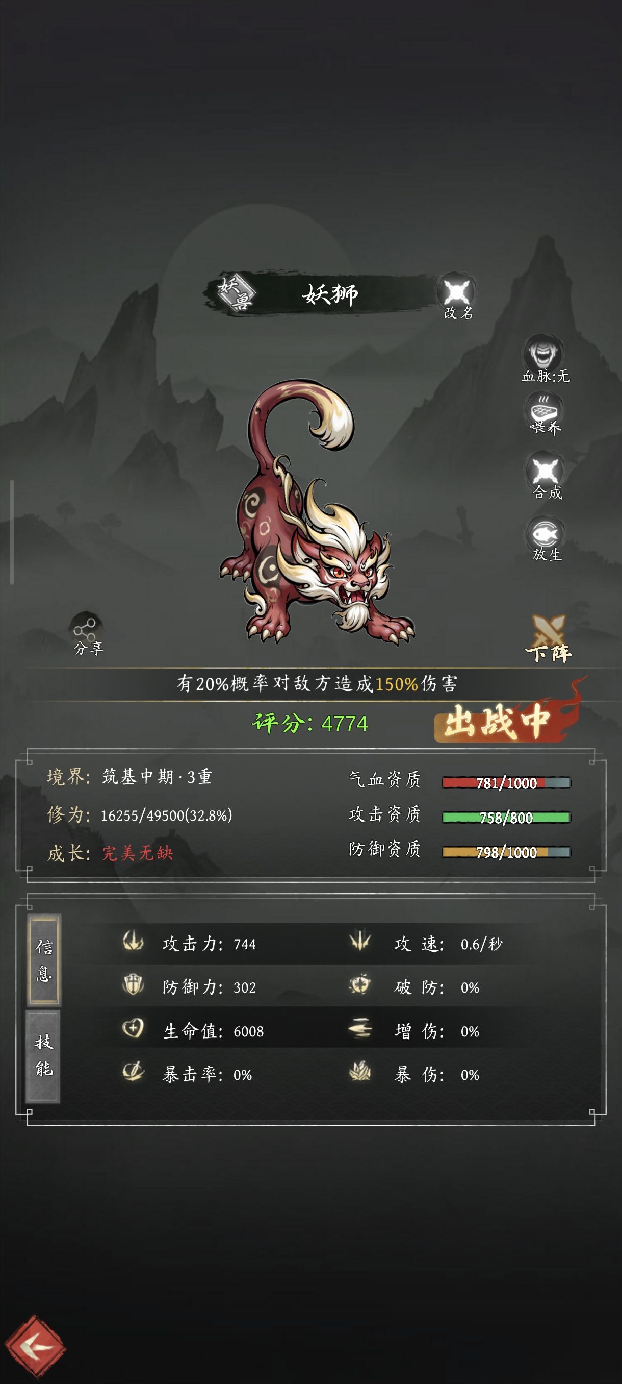 开局做主线任务,做完之后就筑基了,立刻去妖兽山脉抓宠物看到谁捉谁(免费的有三次,个人建议可以另外再买两次),这样的话如果不是太非会有几个或者一个好用的妖兽,本人运气比较好捉到了三个完美无缺,之后就大量抓其他宠物看资质给这些天赋比较好的妖兽融合提升资质。现在你就可以相对舒服的度过新手期。