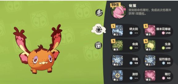 化茧这就是化蝶的特性,也是关键的保命技能。在第1次受到致命伤害之后就可以免疫,然后进入到萌化的状态。这一个机制就可以帮助化蝶多支撑一轮反击,还能触发萌化专属的效果,因此后续在搭配技能还有挑选性格时,都应该注重于这一些方面。那性格的选择其实就应该注重于技能的流派,追求输出的就应该选择保守或者稳重,这些性格就能有效提升魔法攻击可以造成更高的伤害,从实用性这一方面来看还是很不错的。