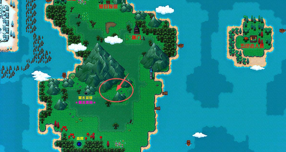 往下走,黑水洞旁山洞雕像右边触摸拿杀气决(慢慢升熟练度),碰到蛤蟆和蛇,(帮蛇,拿毒抗;帮蛤蟆,拿冰抗,建议拿毒抗,后续更新毒雾森林会用上)都给小明