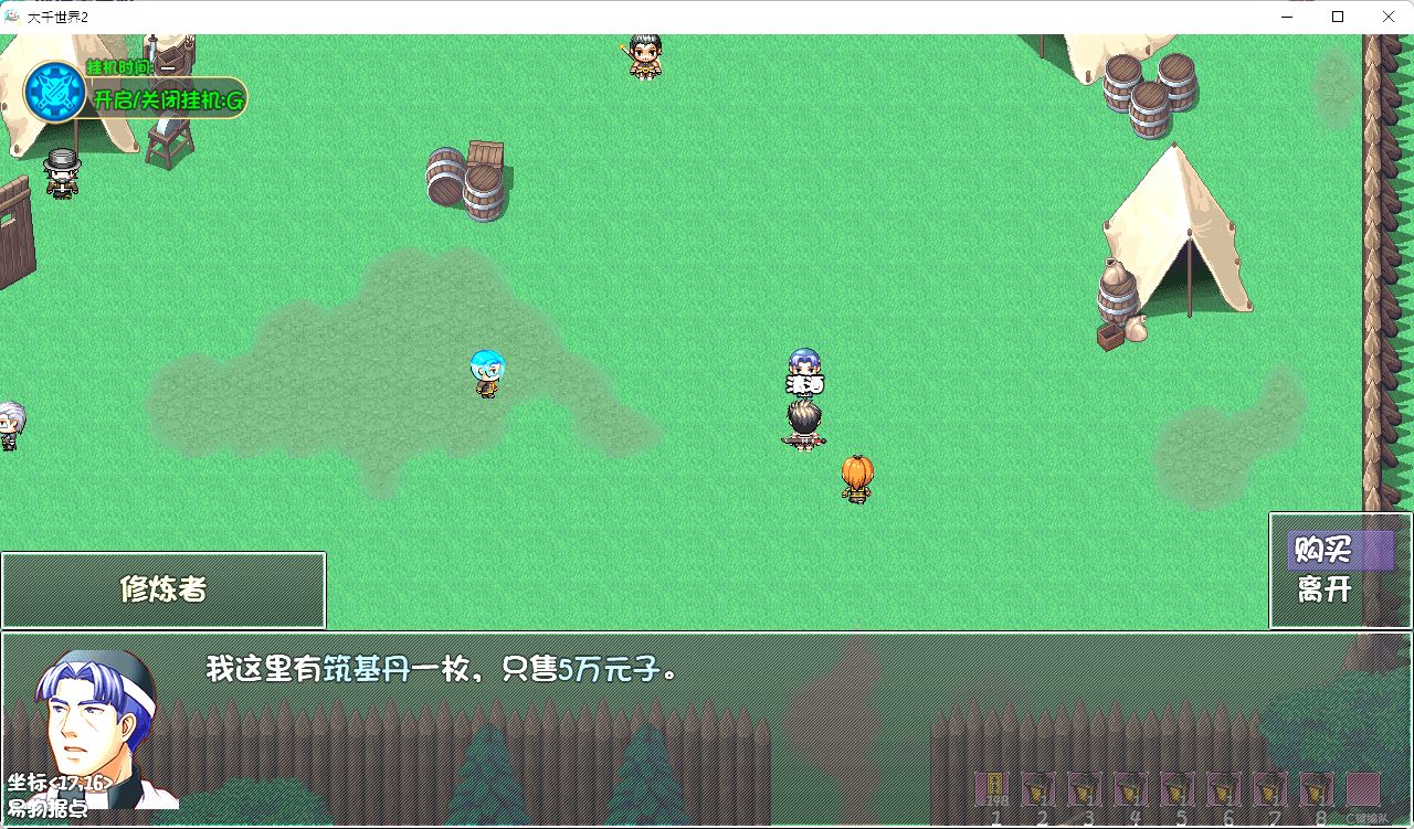 左上角左边进去黑市只买鱼竿15w,其他先不管(钱不够可以去货栈镇或雾隐镇买鱼竿,暂时一样能秒钓鱼)有多余钱买5个宠物粮食,招募母鸡用,狗逍遥要10个(下图左边那个小女孩),杂货店顺便买个传送灯,
