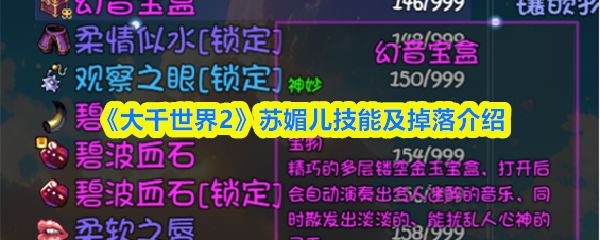 以上就是《大千世界2》苏媚儿技能及掉落介绍,更多相关攻略,请关注更新!