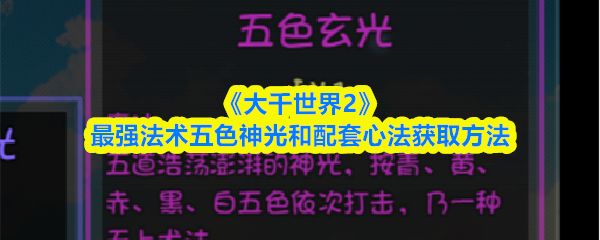 以上就是《大千世界2》最强法术五色神光和配套心法获取方法,更多相关攻略,请关注更新!