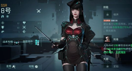 8号角色在此游戏当中是属于隐形型的刺客,在不同的战场局势当中,都会有极强的机动性,可以看得出来此角色的移动速度特别快,而且还具有独一无二的隐身技能。尤其是在单体爆发的输出方面更是非常卓越,就比如在战场上瞄准目标之后,就会造成较大的攻击值,而且攻击的倍率都可达到275%以上。其次还有一个优势,那就是可做到战术规避,结合不同的敌人攻击方式,可做到巧妙躲避。