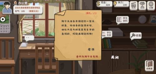 2、办公室:在办公室的窗户边有概率刷出黑色猫咪,撸猫可以得到10点体力;办公室内还有村民委托可以接,这是前期获取金钱和声望的主要方式,不过花钱的委托不要做。