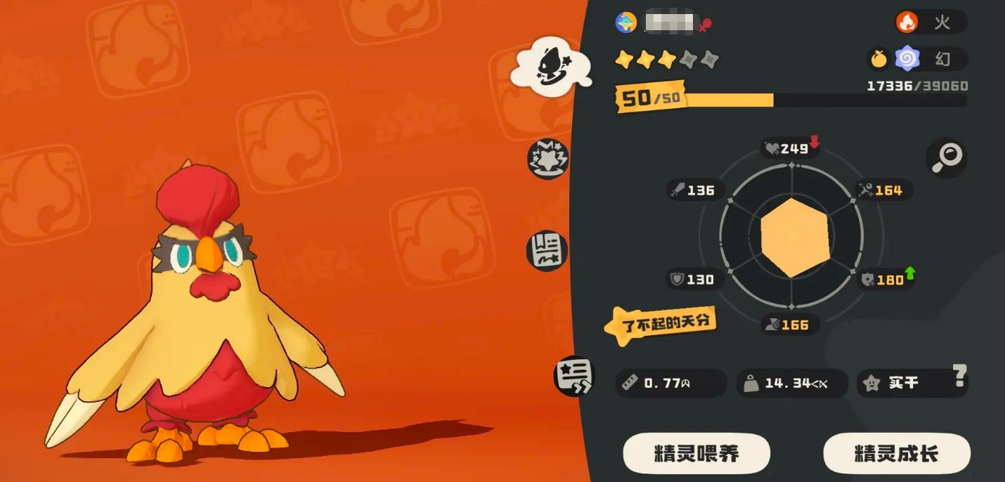晕晕鸡是火属性的精灵,说到火属性的精灵,其实单属性的精灵往往并没有太多优势,尤其是在后期,可能会遇到属性克制的问题,晕晕鸡也不例外。不过它的种族值是500,算是一个中规中矩的数值,虽然不能说特别强,但也不至于很弱,属性分布比较平均,既没有特别高的攻击,也没有特别强的防御,总体来说是个均衡型的精灵。可能有些玩家觉得它的表现有点平淡,既没有什么明显的缺点,但也没有什么突出的优点。